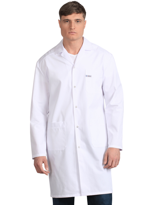 Классический мужской медицинский халат. На груди имеется карман с отделением для авторучки. Так же имеются два боковых, накладных кармана. Для удобного проникновения в карманы брюк, в боковых швах халата имеются разрезы.
